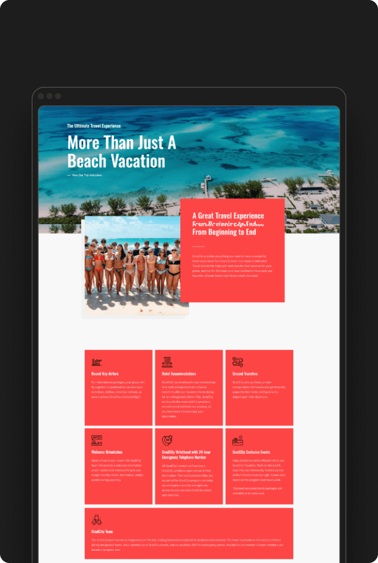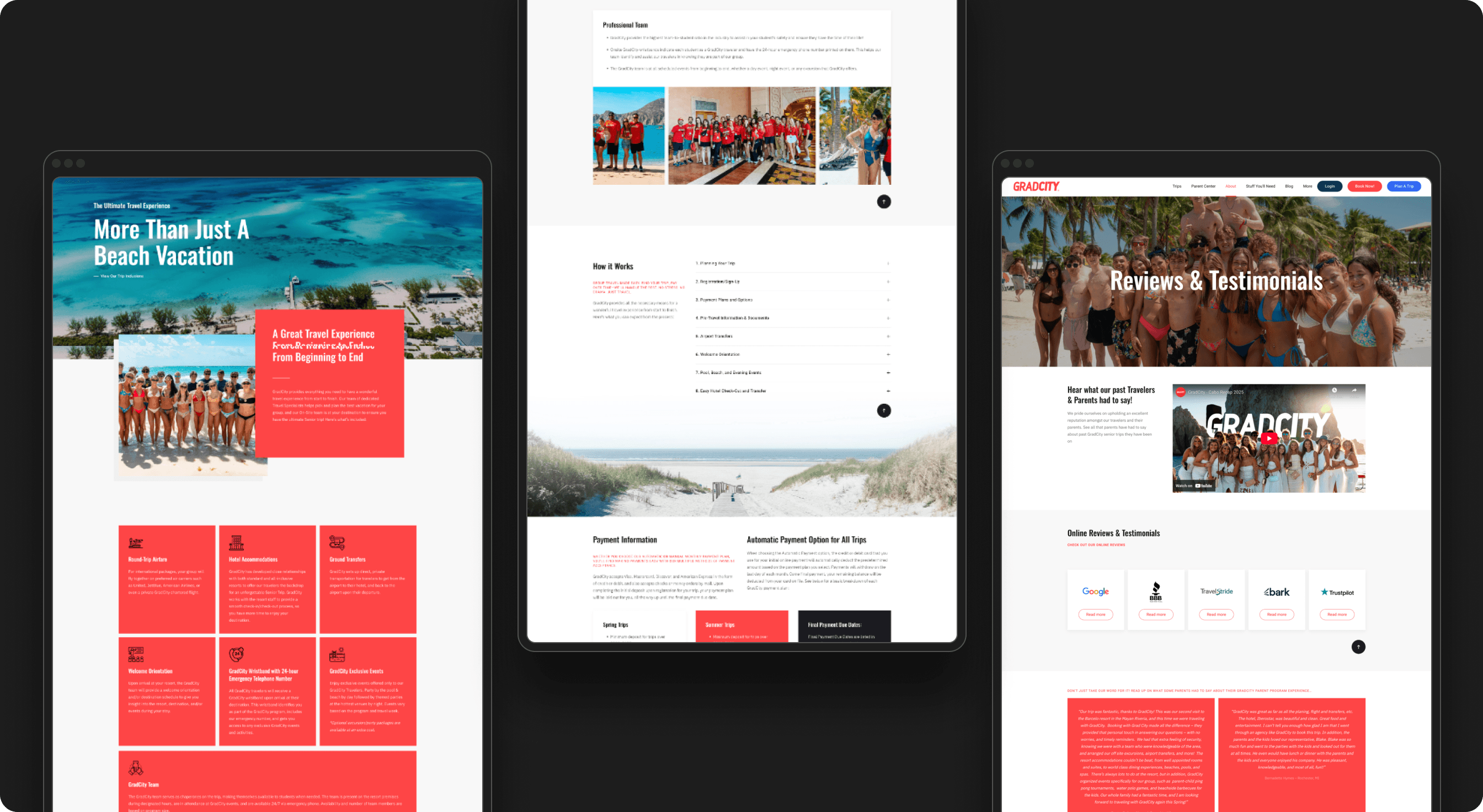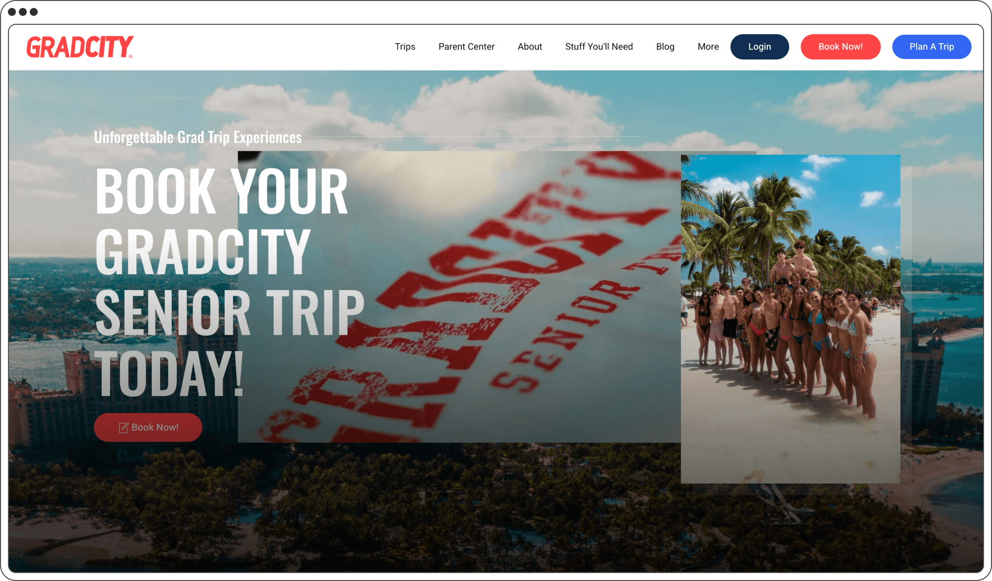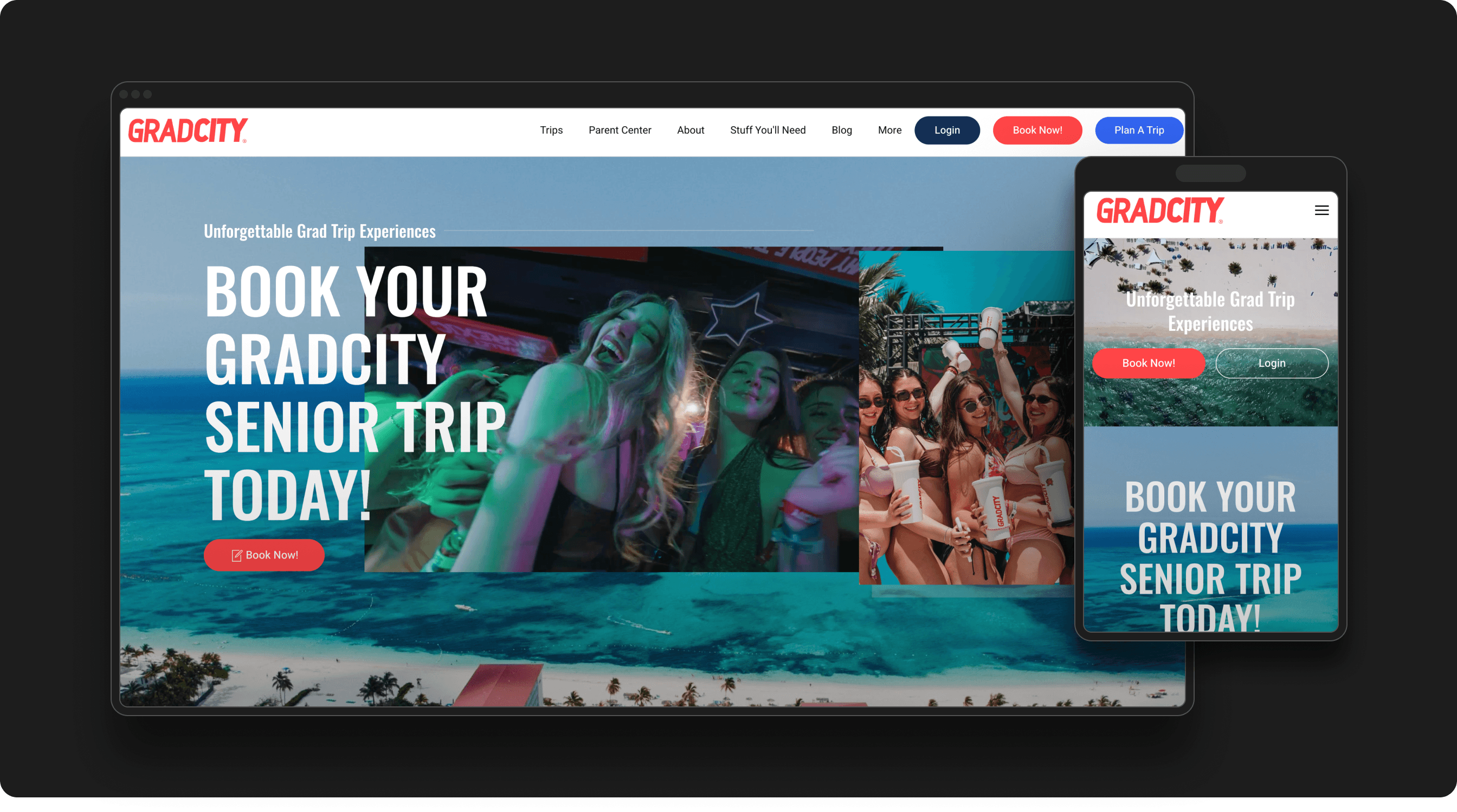 GradCity, a leader in high school graduation travel experiences, aimed to distinguish its offerings in a competitive market. The objective was to develop a compelling brand identity that resonates with students and parents, complemented by a cohesive digital strategy to enhance online engagement and reinforce brand recognition
