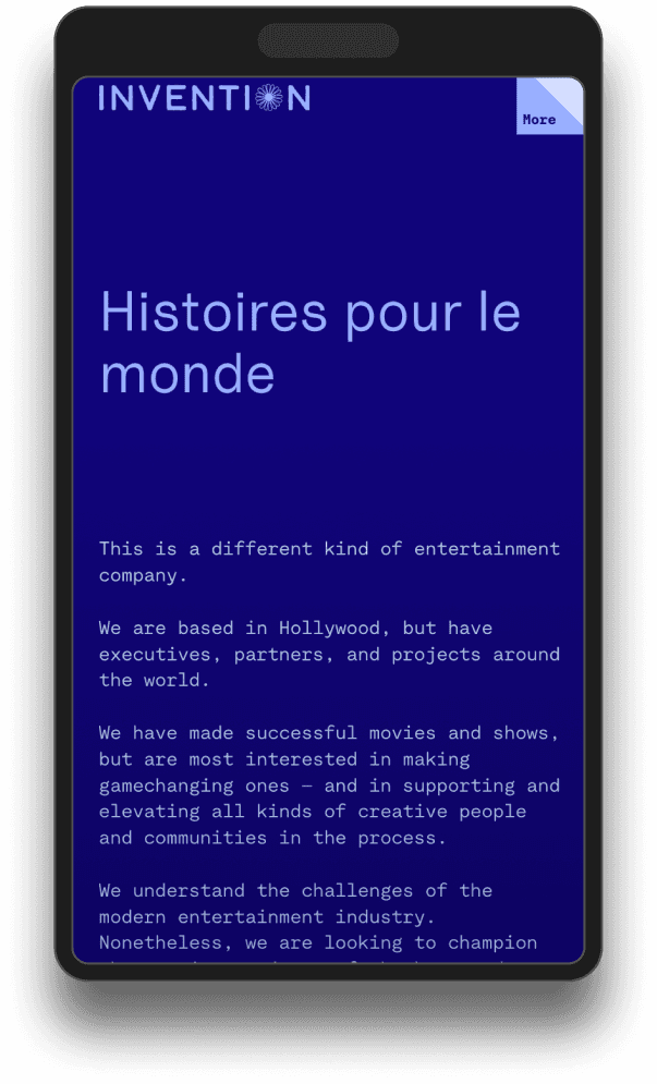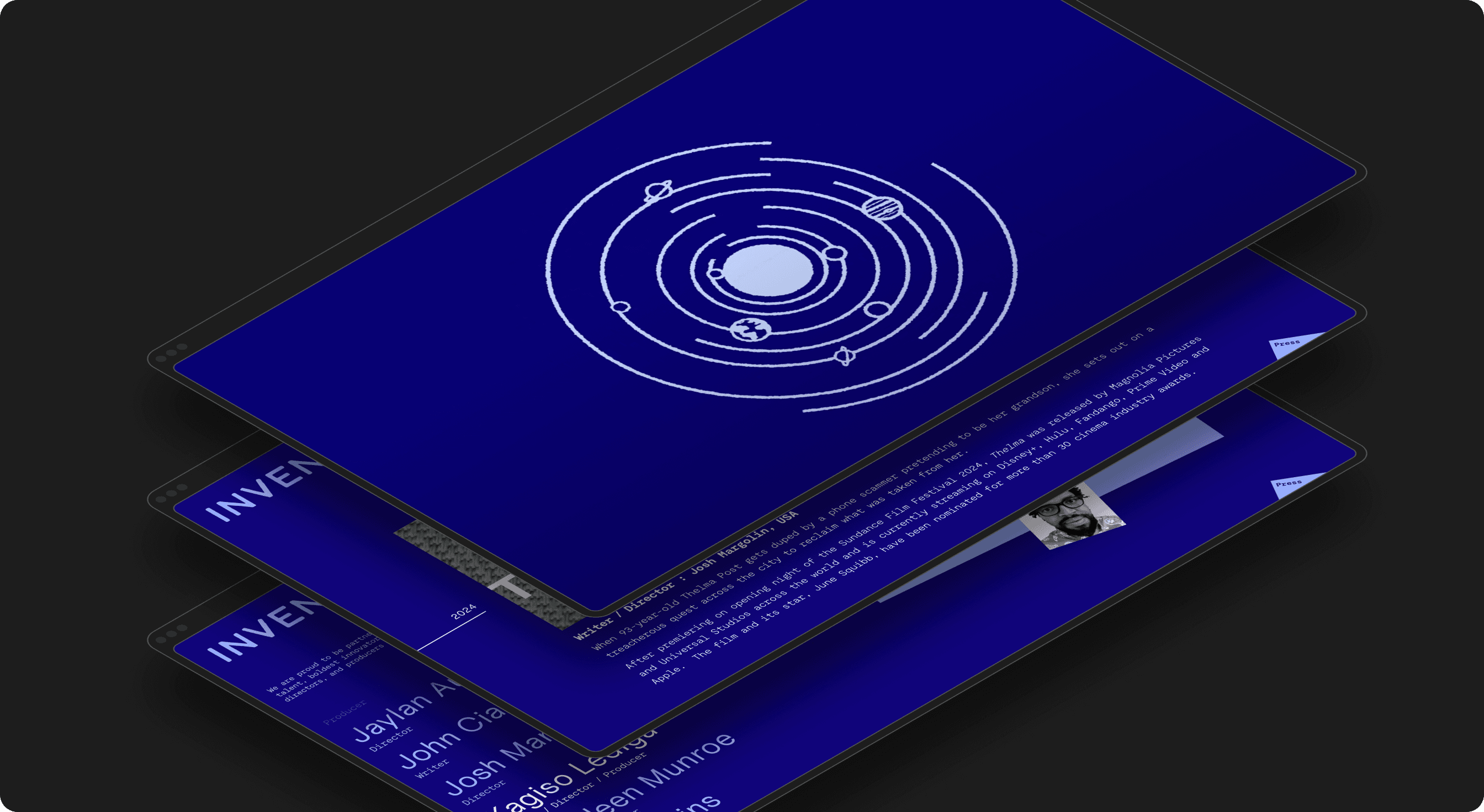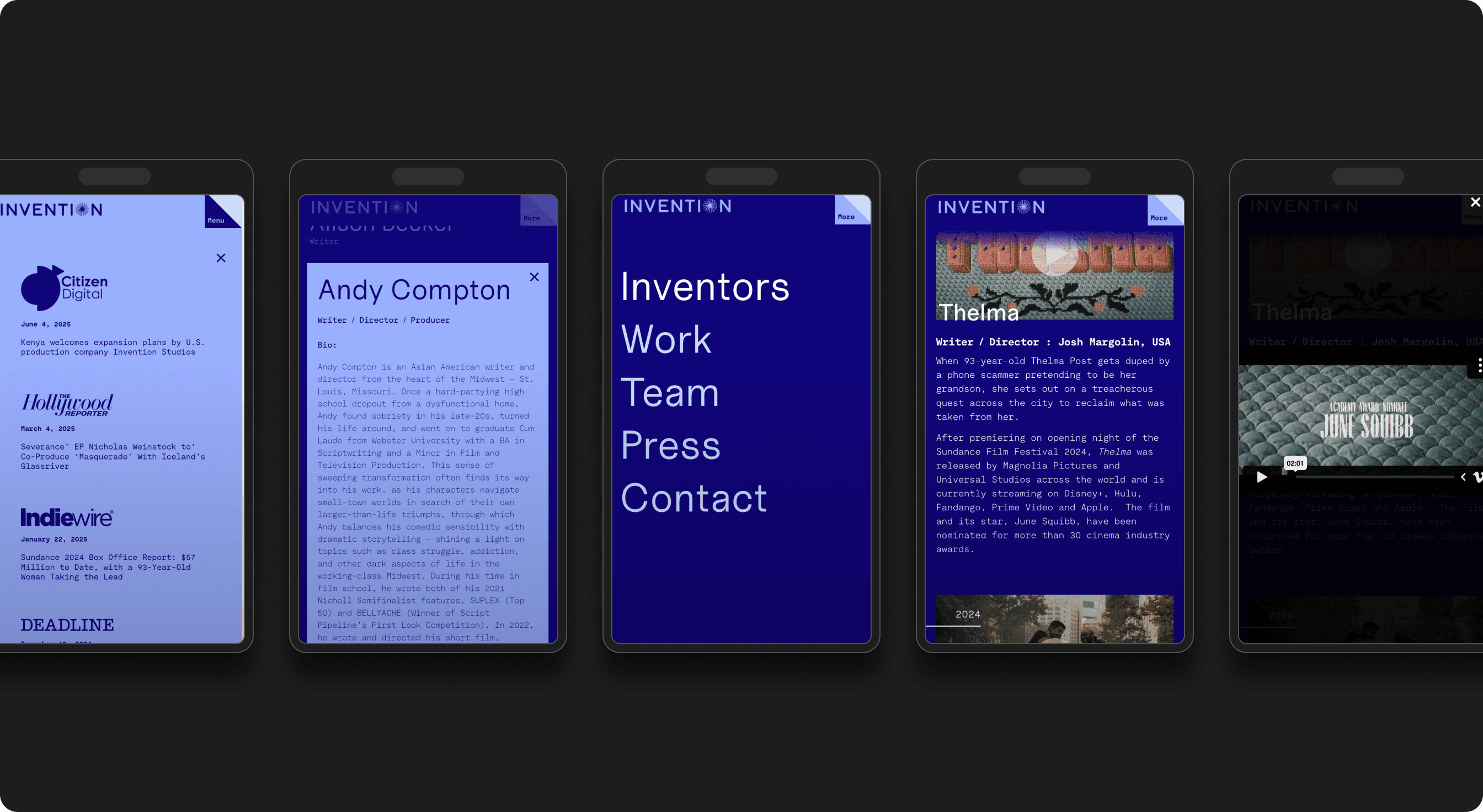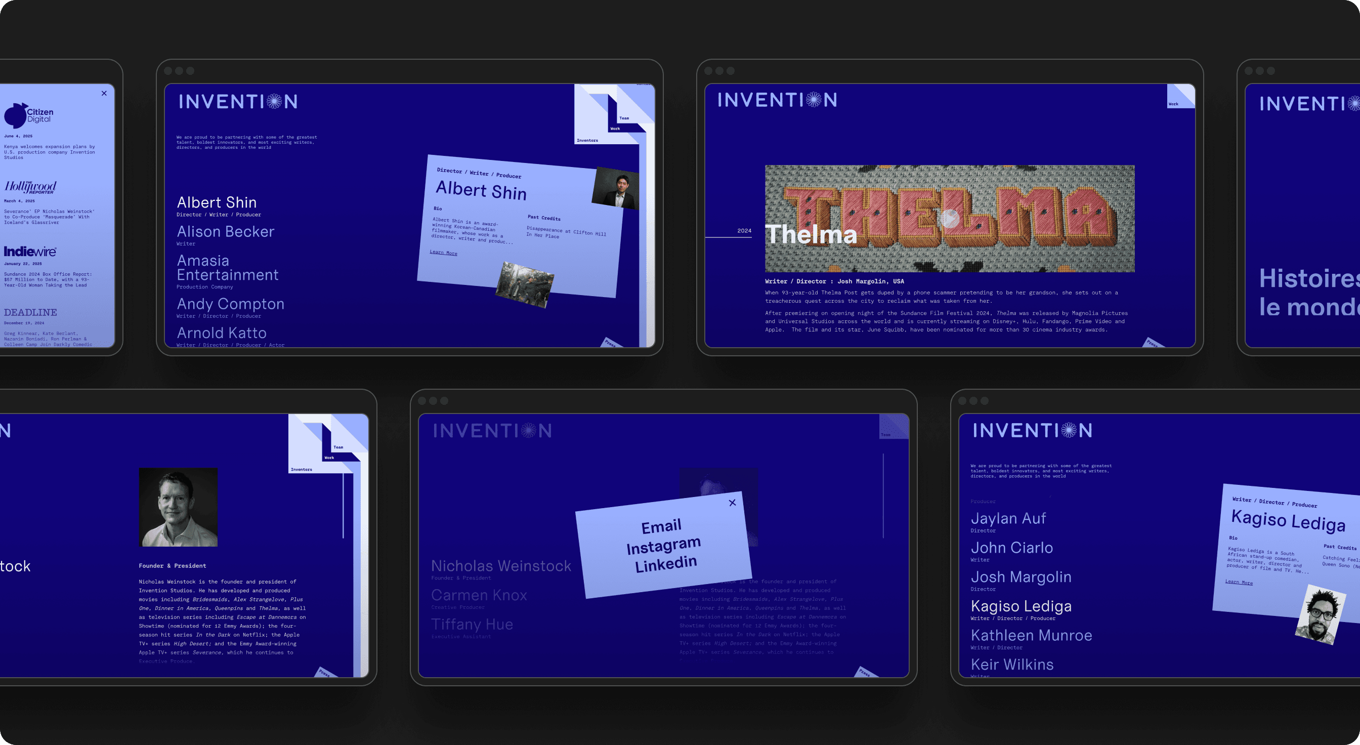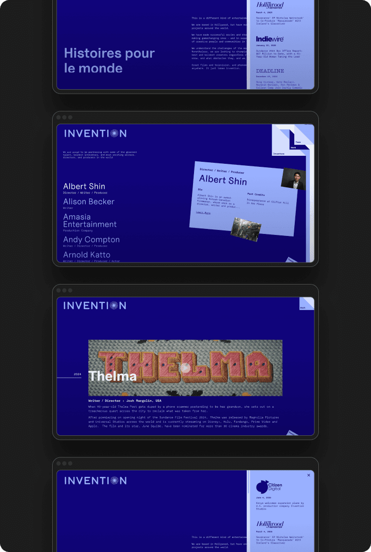 Invention Studios, a Hollywood entertainment company dedicated to developing innovative films and supporting diverse creators, partnered with brand powerhouse CAA to craft a bold new identity. The challenge was to translate these high-concept, bespoke designs into a flawless digital experience that captured the prestige of Hollywood while remaining approachable to creators and partners.