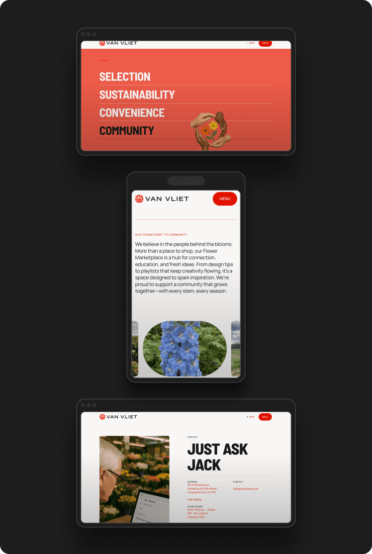 Van Vliet New York, the American arm of the global J. van Vliet Flower Group, needed a digital experience that reflected its role as a premium wholesale floral destination for NYC’s creative community. The challenge was to bring its European sourcing heritage, expansive product selection, and community-driven ethos into a modern, convenient platform that serves florists and designers both in-store and online—anytime, anywhere.